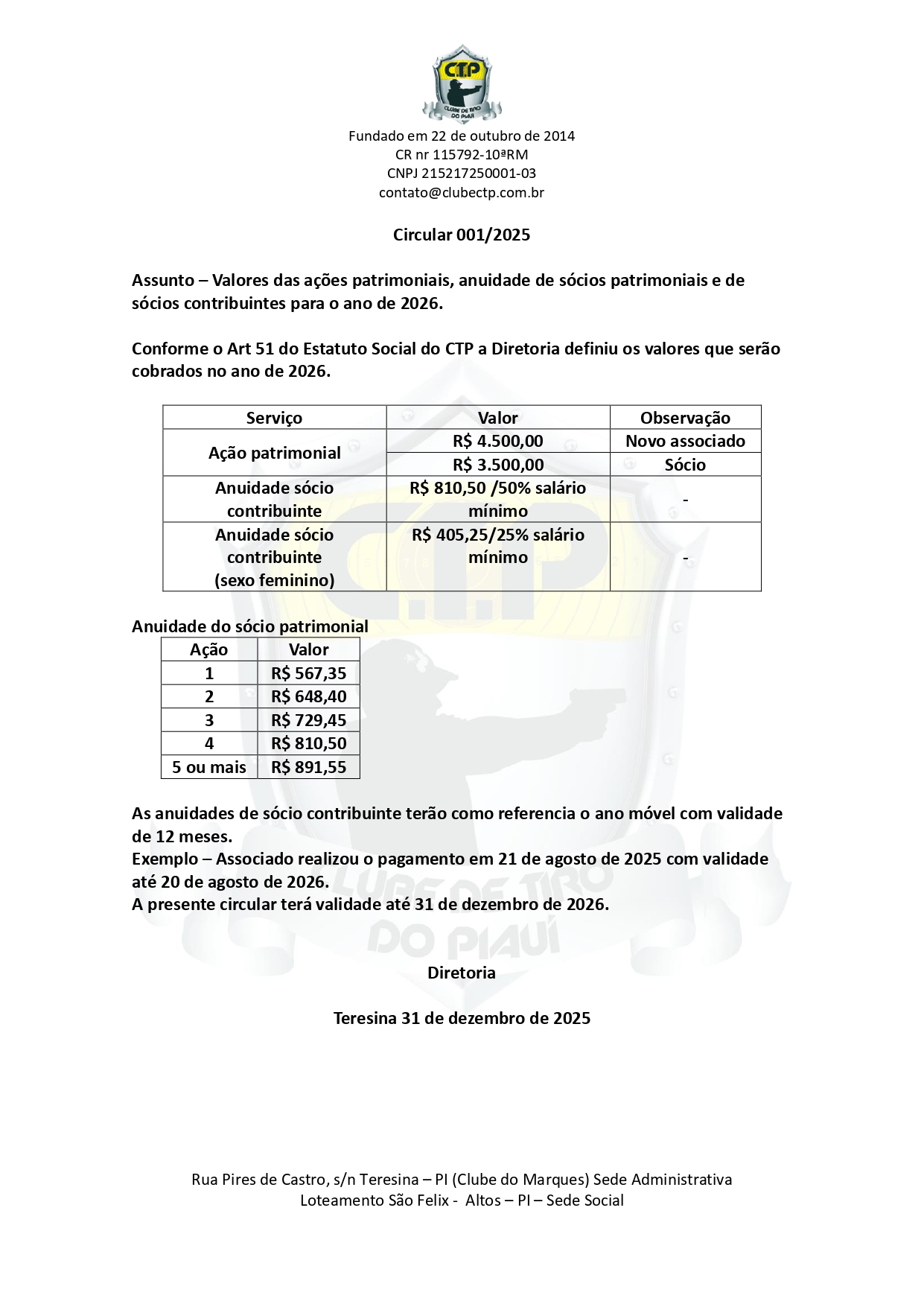 Circular 001/2025 Assunto – Valores Anuidades 2026 LEIA MAIS » 31 de dezembro de 2025 Nenhum comentário